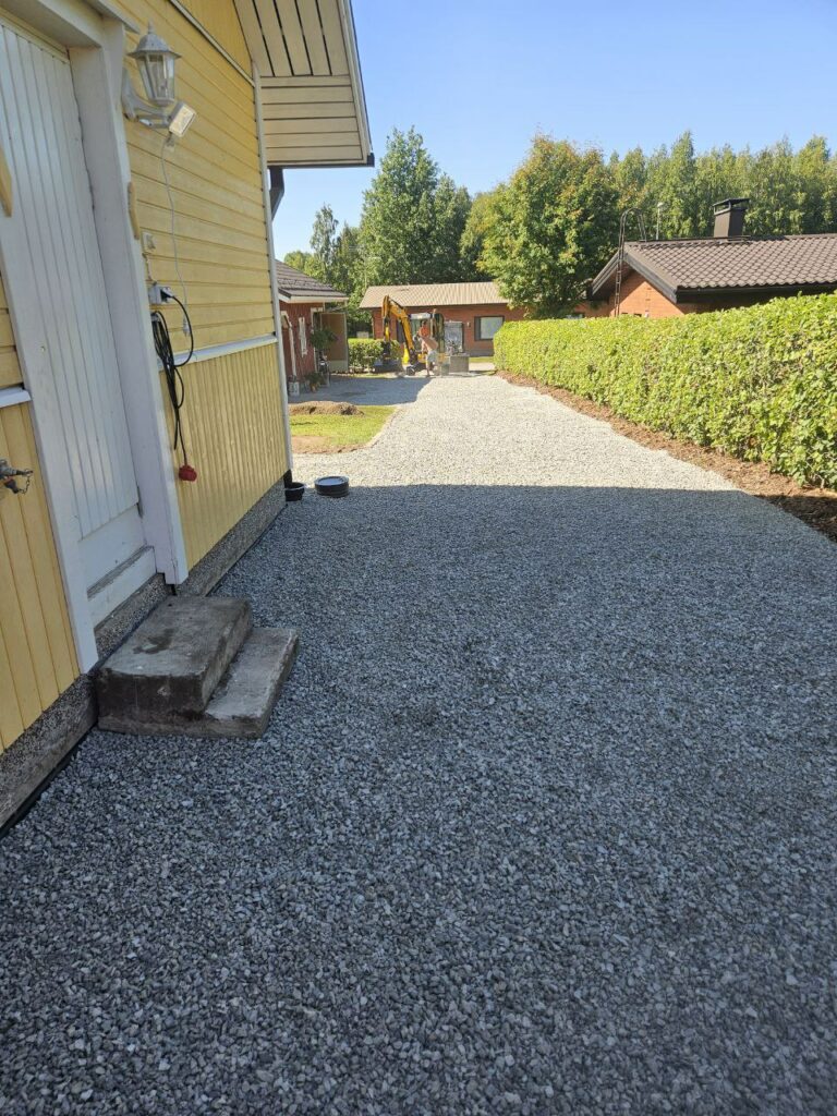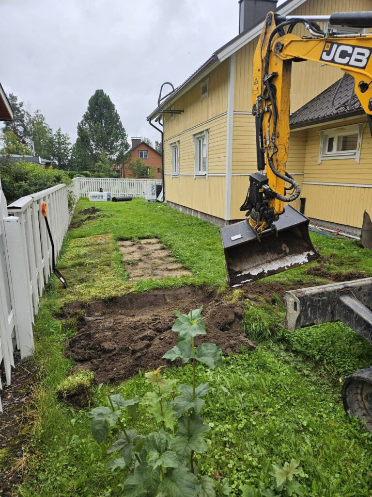 Suoritimme Iisalmen Peltosalmella omakotitalon salaojaremontin kesällä 2024. Työ sisälsi salaojien ja sadevesien uusinnan. Lisäksi anturan ja sokkelin saumaan hitsattiin bitumieriste. Ajokaista uusittiin sepelillä. Urakka valmistui aikataulussa viikon aikana.